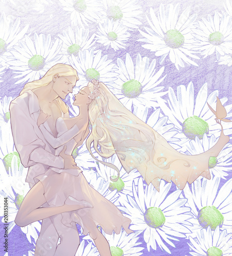 Beautiful Anime Cartoon Wedding Illustration Young Couple