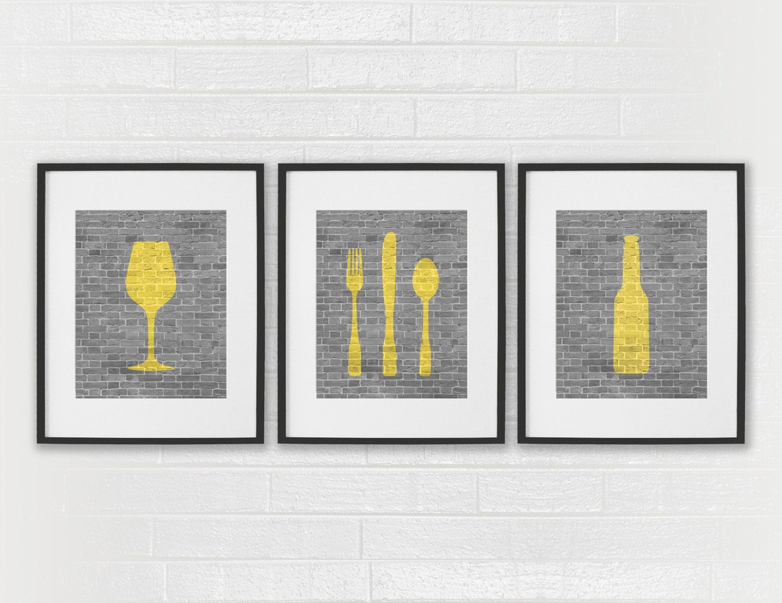 10% coupon applied at checkout save 10% with coupon. Minted's dining room art collection. This piece of wall art for example, features a yellow background, with a black dog. Many years ago, long before i began blogging, i had the walls in my dining room papered in a pretty, yellow and blue (with touches of raspberry red) wallpaper. Elegant golden living room wall decor.